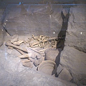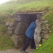 Fourknocks-最右圖的小山丘裡,有刻著奇怪圖案的石頭們! 這邊是鎖著的,中間圖是導遊在鎖門,左圖是裡面的石頭之一!