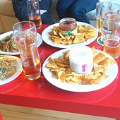 這裡的蝦子殼超級硬!! 很大隻,肉很紮實!但又比明蝦的味道甜美一些!! 頭像泰國蝦,身體像蝦猴(台灣鹿港名產),我買一盤煎檸檬蝦5歐元,只有四隻,但其他人點的東西都吃完了,我還在剝殼= =超硬的啦!!